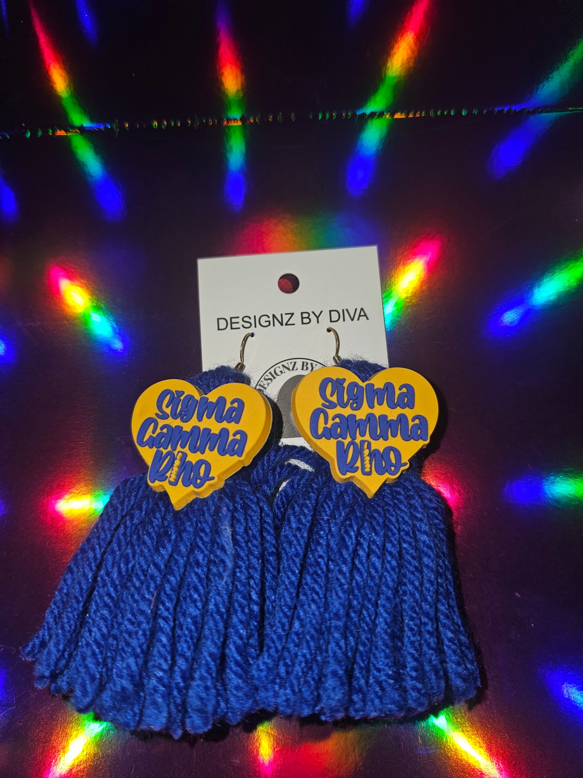 Featuring vibrant royal-blue yarn tassels paired with a bright yellow heart charm that reads “Sigma Gamma Rho,” these earrings bring the perfect blend of sisterhood, style, and sorority spirit. Lightweight, eye-catching, and full of movement, they’re ideal for conferences, step shows, Founders’ Day events, brunches, and everyday Greek-life slay.