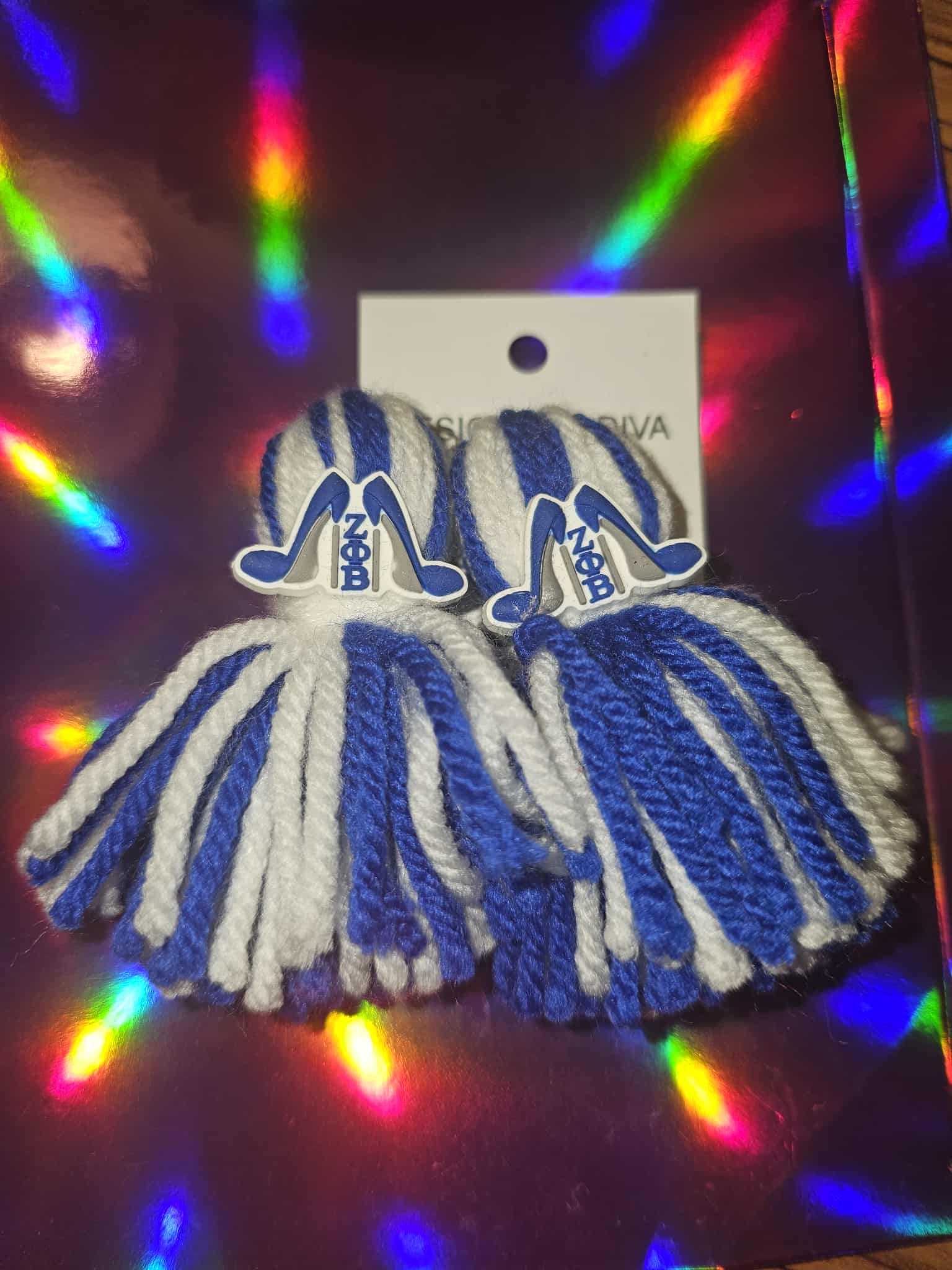 Step with pride in Stiletto Zeta. These tassel earrings feature the signature royal blue and white of Zeta Phi Beta Sorority, Inc., accented with a sleek stiletto heel charm for that perfect blend of Finer Womanhood and fashion-forward flair.